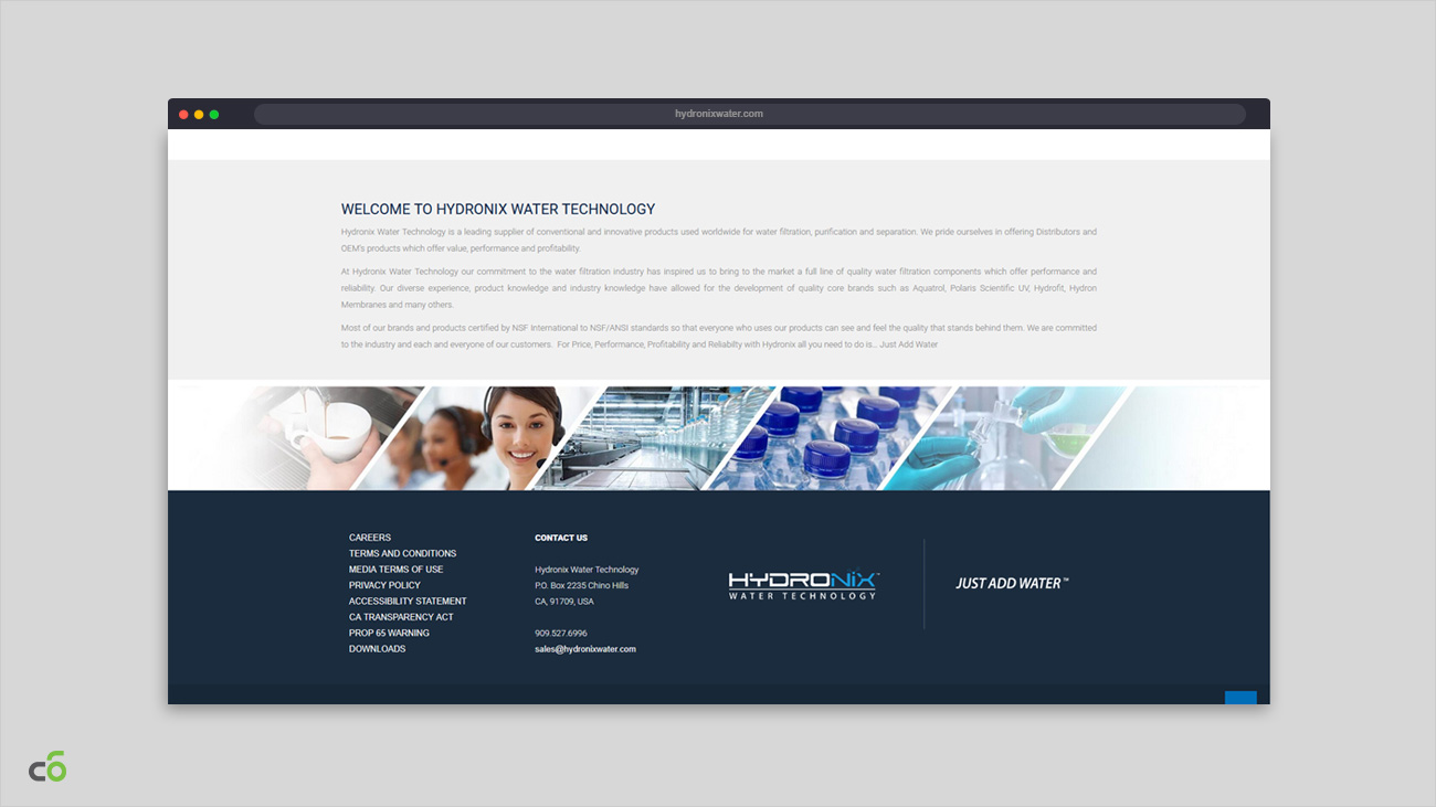 Hydronix Water Technology is a conglomerate based in Los Angeles, CA specialized in water filtering systems. They have trusted for more than 8 years in us, to design some of their websites, and to support them.