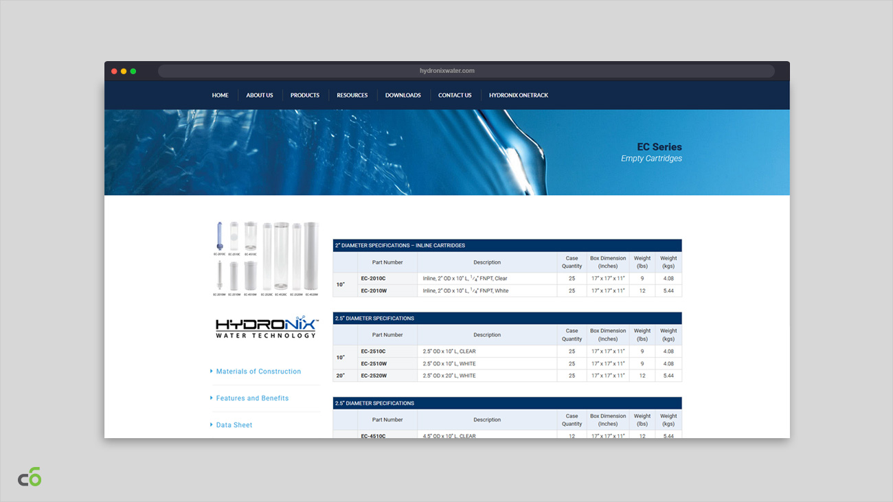 Hydronix Water Technology es un conglomerado con sede en Los Ángeles, California, especializado en sistemas de filtración de agua. Nos han confiado el diseño y el soporte de algunos de sus sitios web durante más de 8 años.